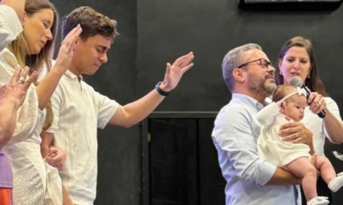 Neste domingo (30), o deputado federal Nikolas Ferreira (PL-MG) e sua esposa, a modelo Lívia Orletti, apresentaram a filha Aurora ao Senhor. A cerimônia aconteceu